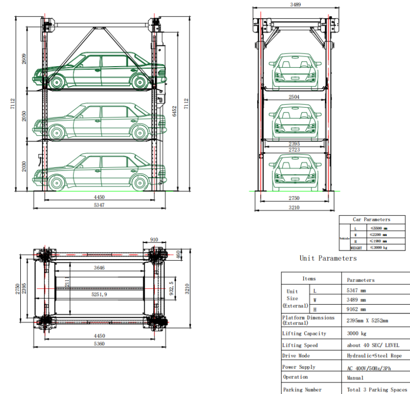Dieses GPARK-PFS ist eine kostengünstige Möglichkeit, drei/vier Fahrzeuge auf einem Parkplatz zu parken. Eine Art einfacher Parklifter, geeignet für kommerzielle und private Parkzwecke.