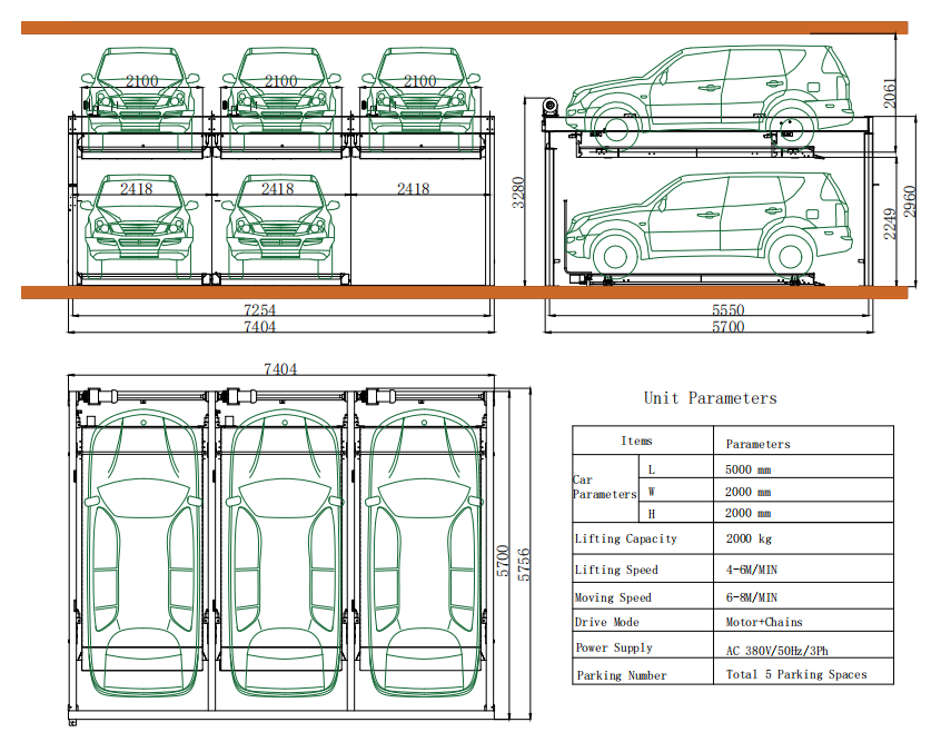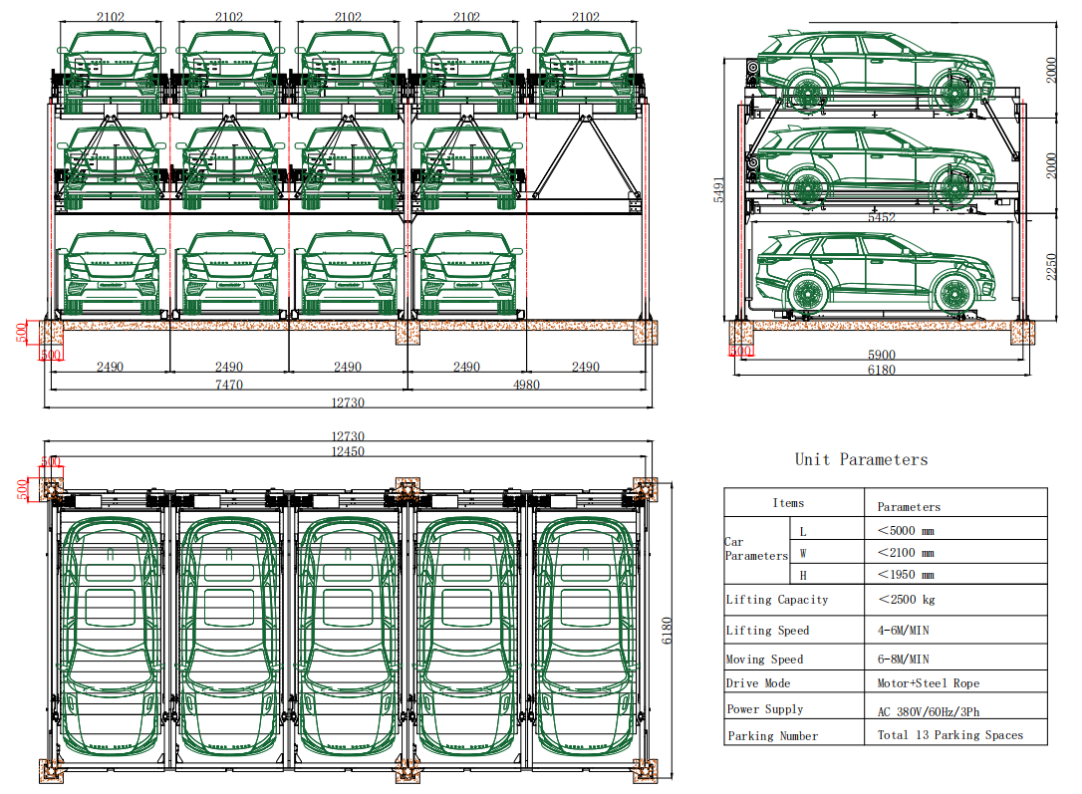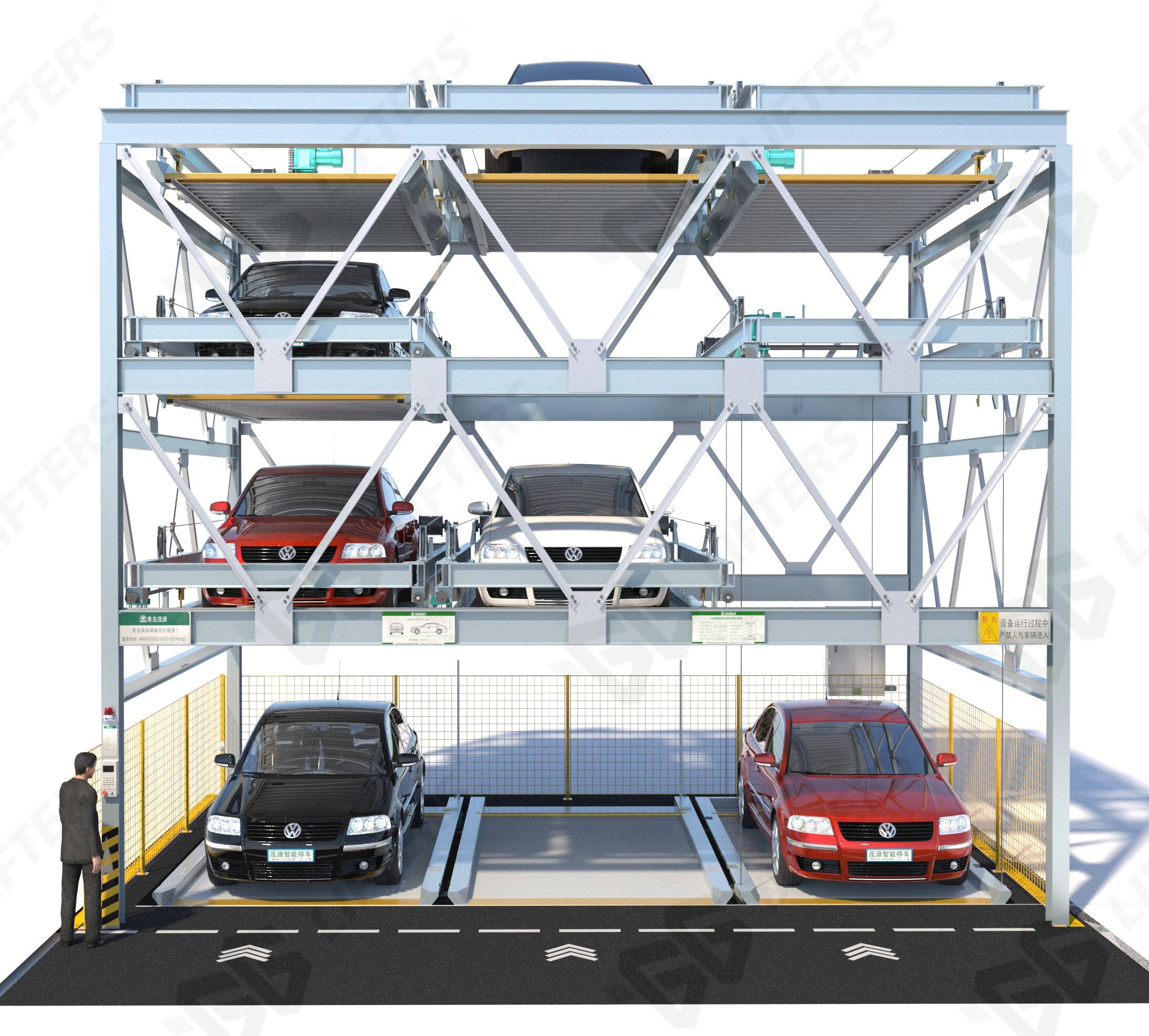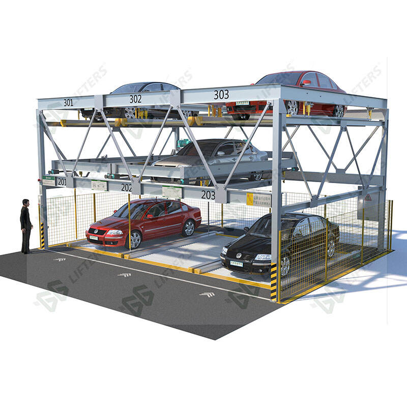 Das Puzzle-Parksystem wird von einem Motor angetrieben und verwendet Rollkettensysteme oder Stahlseilhebewerke, mit PLC-automatischer Steuerung, um Parkplätze nach Bedarf zu ändern.