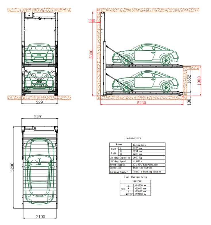 GPARK-UCS ist ein eigenständiges Parksystem zur Verwendung im Innenraum der Garage mit Grube für Wohn- und Gewerbezwecke.