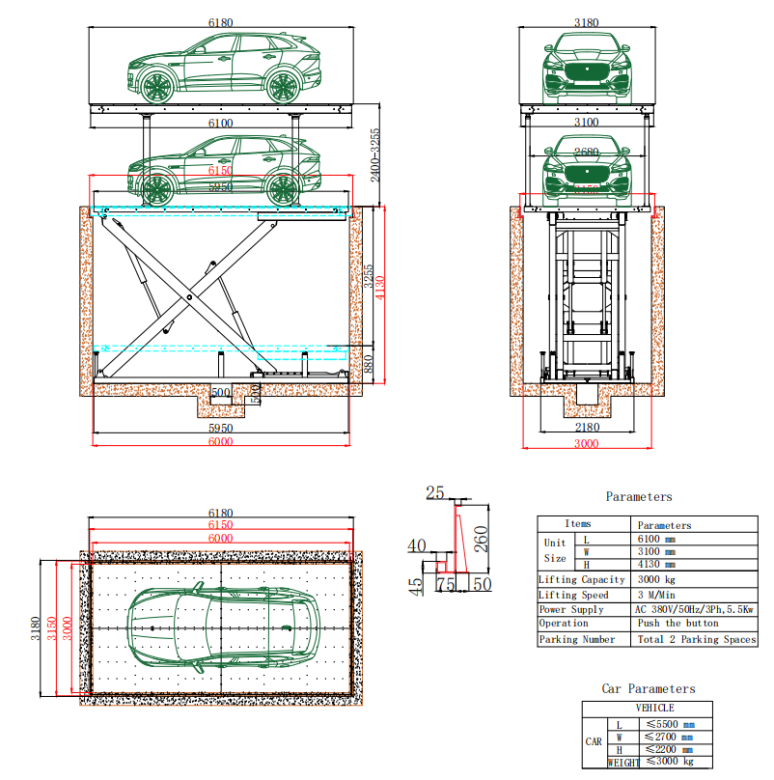 GPARK-USS, zweistufige Scherheben USS, um zwei Autos unabhängig zu parken, wurde zu einer großartigen Lösung für Hausbesitzer, die ihren Garagenraum maximieren möchten. Mit einer Doppeldeckscherhebe kann an der Stelle, wo normalerweise nur ein Auto Platz findet, 2 Autos abgestellt werden.