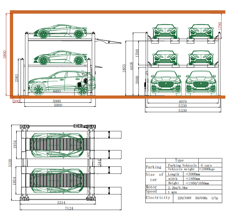 3.Adecuado para estacionamiento y almacenamiento de seis vehículos, dos vehículos arriba y abajo al mismo tiempo.