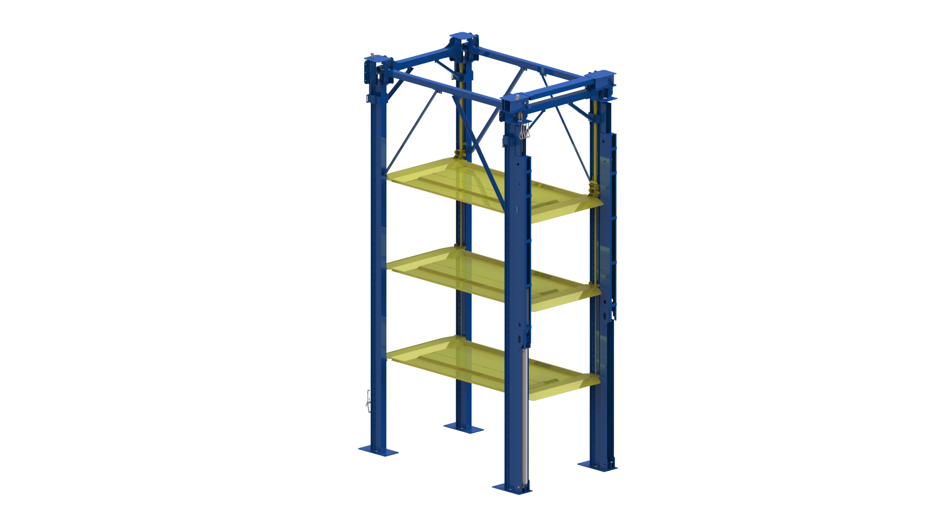 1.Four post multi-level parking system with hydraulic driven and steel rope lifting system.