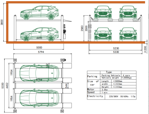Questo GPARK PFP-TD è una soluzione economica per consentire il parcheggio di 4 veicoli in 2 posti auto. Un tipo di sollevatore per auto semplice, adatto sia a scopi commerciali che residenziali.