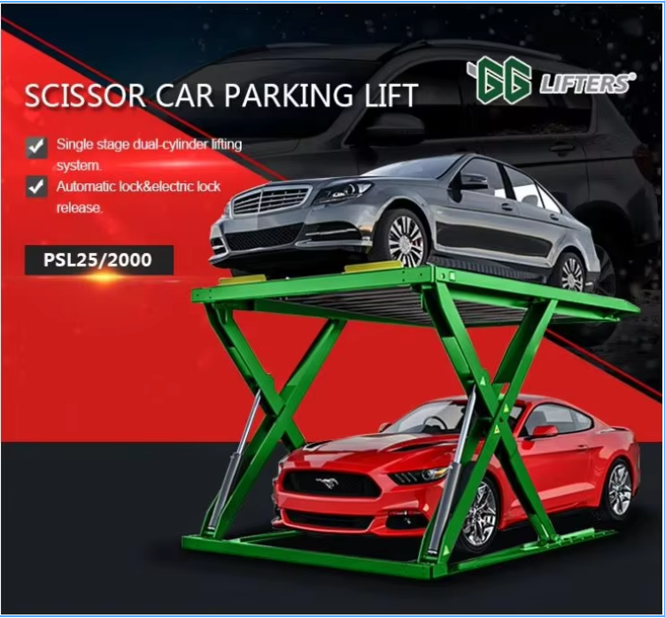 Questo GPARK-PSL è un sollevatore di parcheggio a doppio strato a forbice, con piccola occupazione dello spazio, pilastri incrociati, posizionando la cilindrata all'interno del pilastro per risparmiare spazio rispetto ad altri sollevatori di parcheggio.